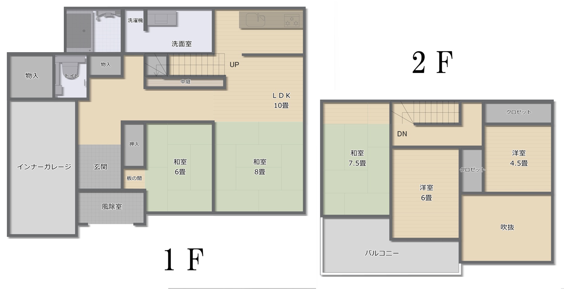 | 間取詳細 | 1F 2部屋 2F 3部屋 |